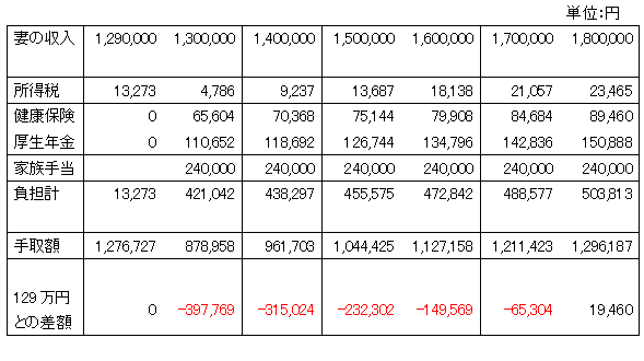東京都、妻40歳未満、夫に家族手当が月2万円ある場合